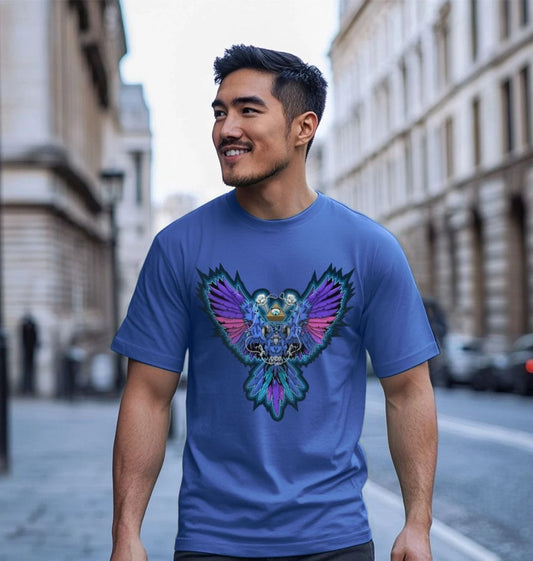 Freedom Sold: This design symbolizes the exchange of freedom for greed. Vibrant wings, full of life, represent nature’s magnificence, but they are bound by the chains of human desire, showcasing the dark trade that robs these birds of their true flight.
